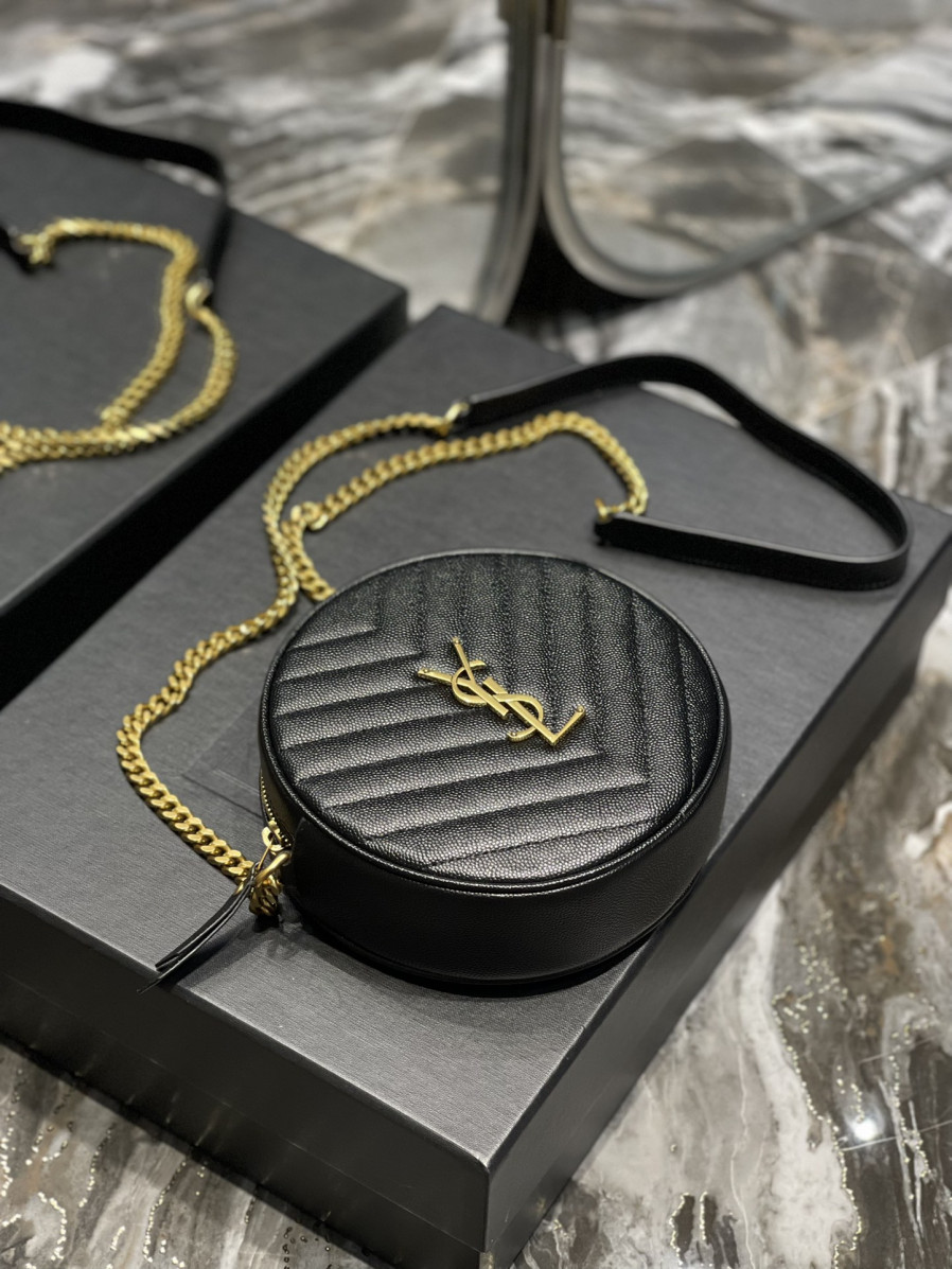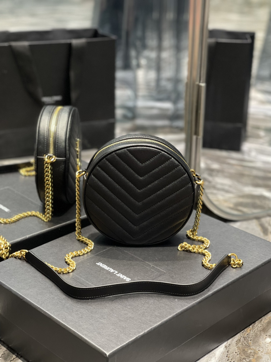 • 생로랑 쉐브론 라운드 카메라 백 블랙