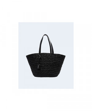 생로랑 파니에 미디엄 라피아 바스켓 백 블랙 > WOMAN