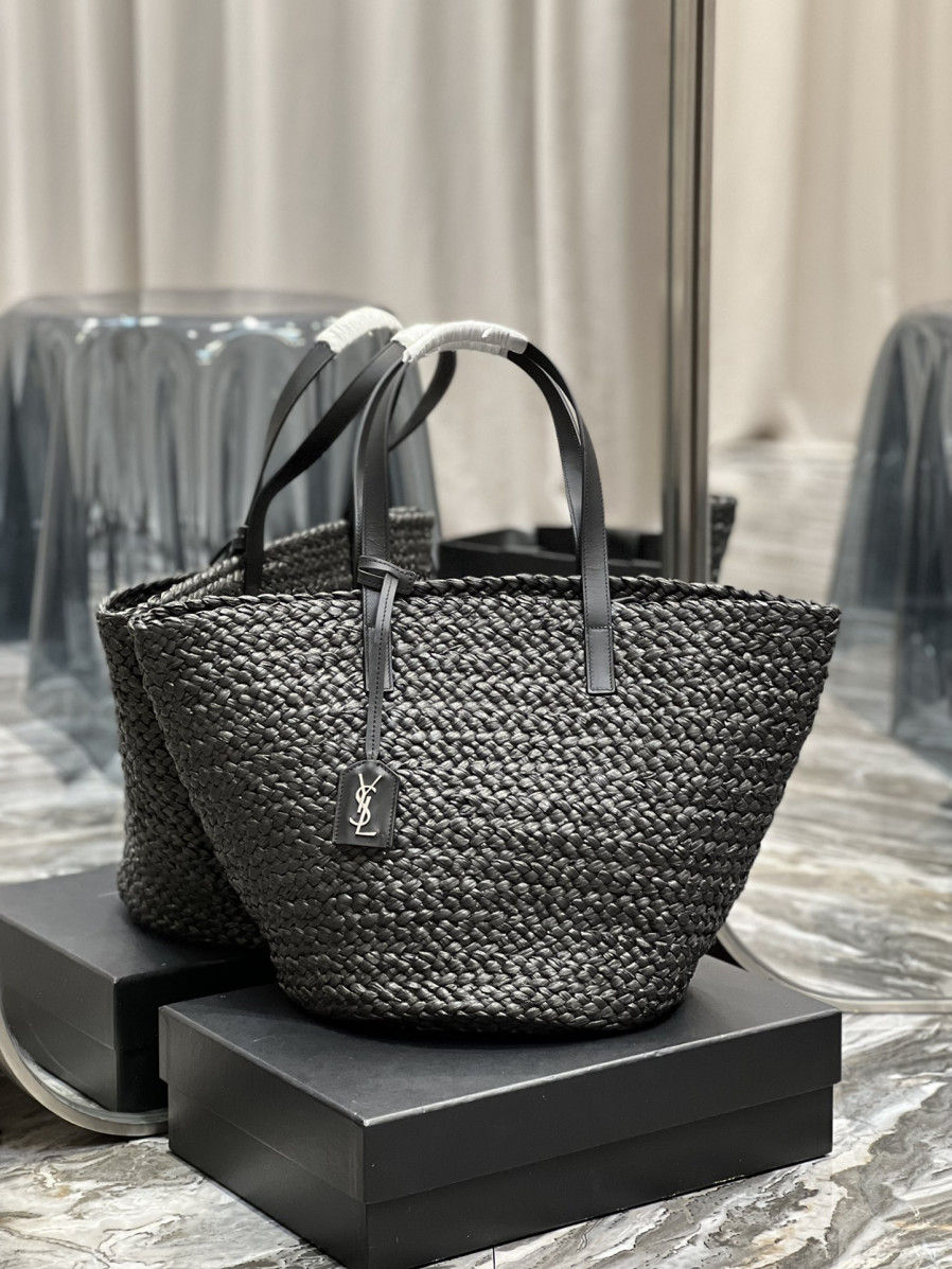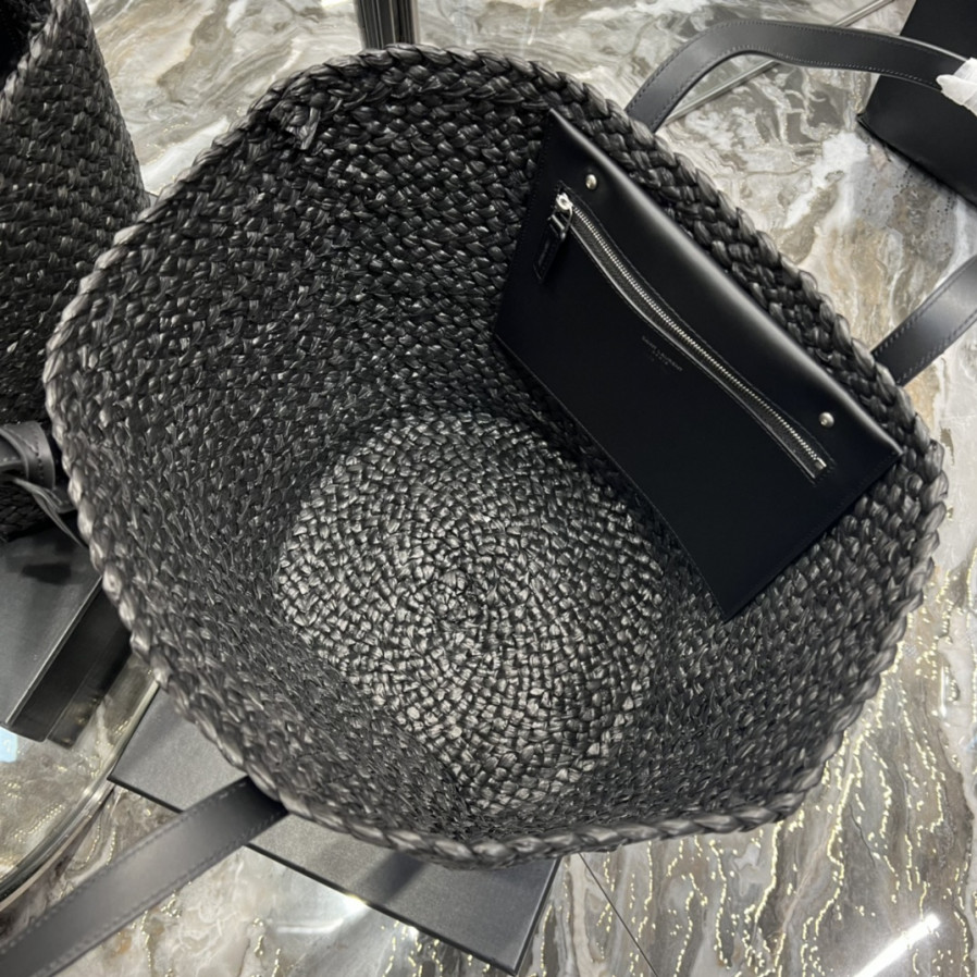 생로랑 파니에 미디엄 라피아 바스켓 백 블랙 요약정보 및 구매