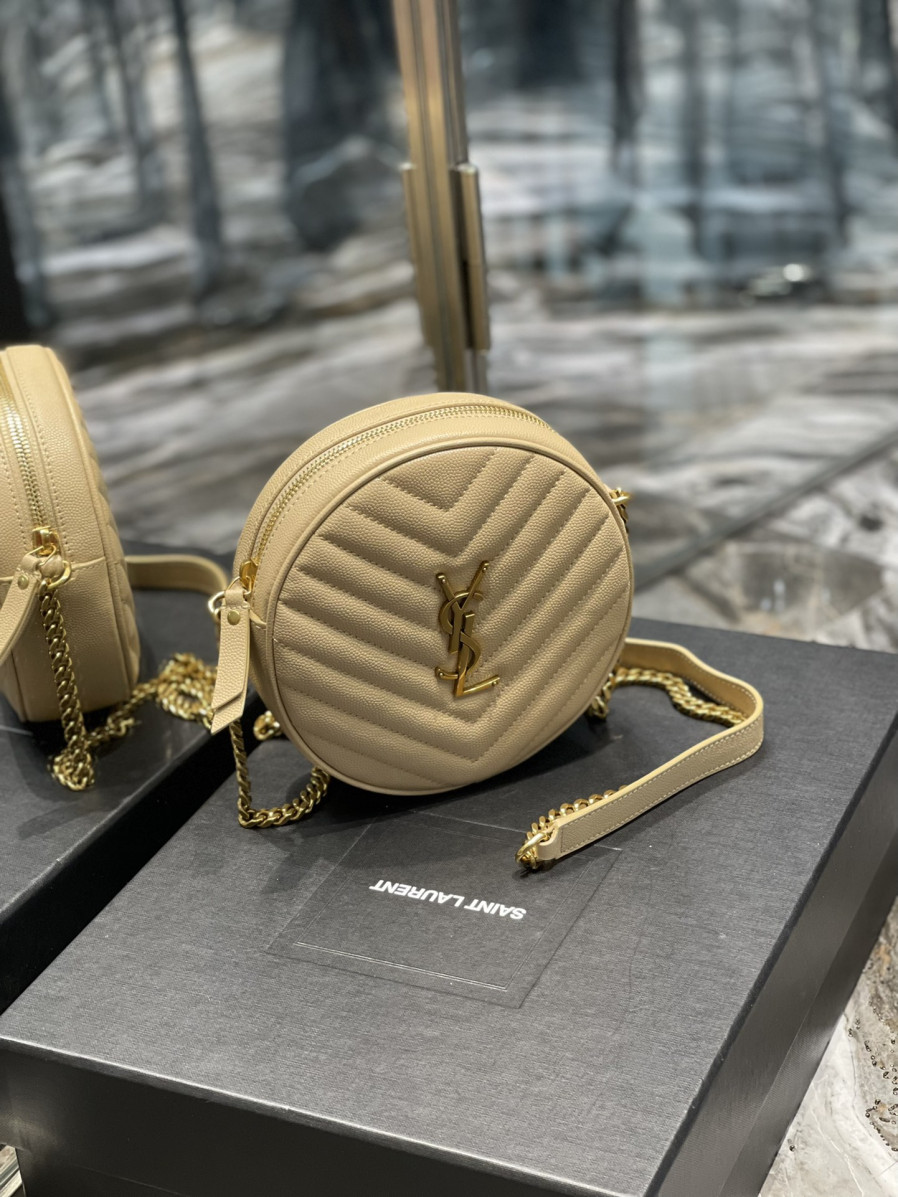 • 생로랑 쉐브론 라운드 카메라 백 베이지