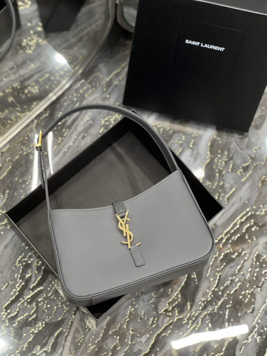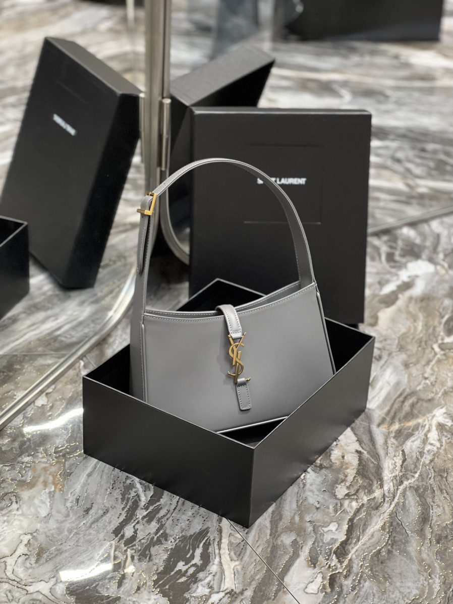 생로랑 LE 5 A 7 카바스 레더 호보백 그레이 골드 > WOMAN