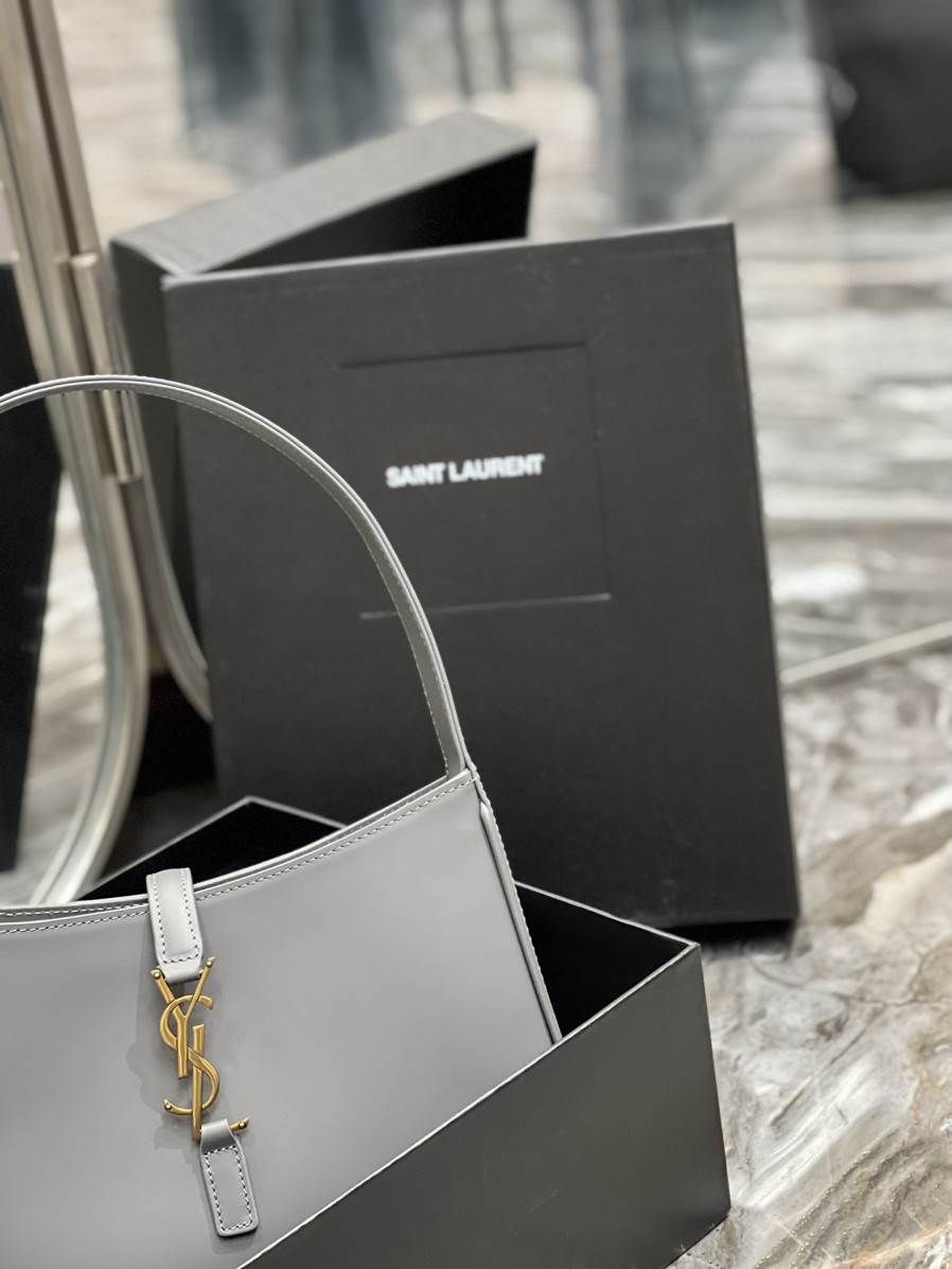 • 생로랑 LE 5 A 7 카바스 레더 호보백 그레이 골드