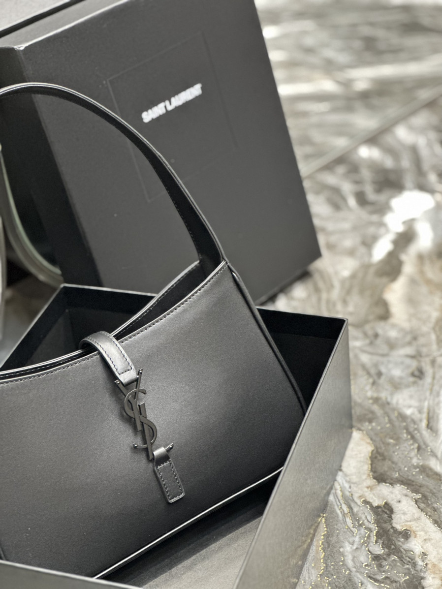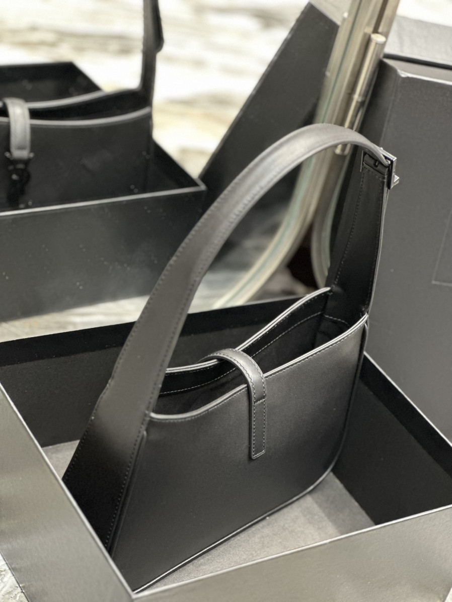 생로랑 LE 5 A 7 카바스 레더 브러시드 호보백 다크 > WOMAN