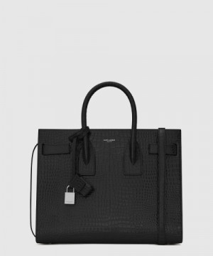 생로랑 크로커다일 무늬가 새겨진 블랙 가죽 소재의 스몰 삭 드 주르백 37829 > WOMAN
