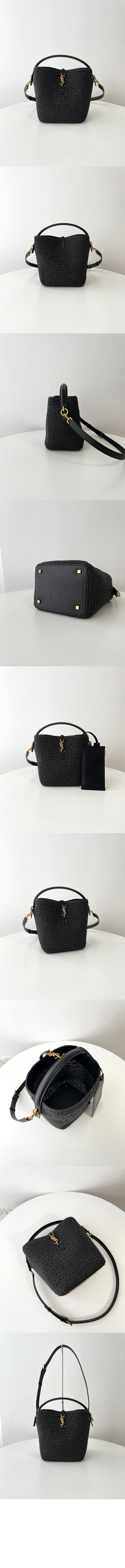 생로랑 우븐 라피아 및 베지터블 태닝 가죽 소재의 LE 37 773991