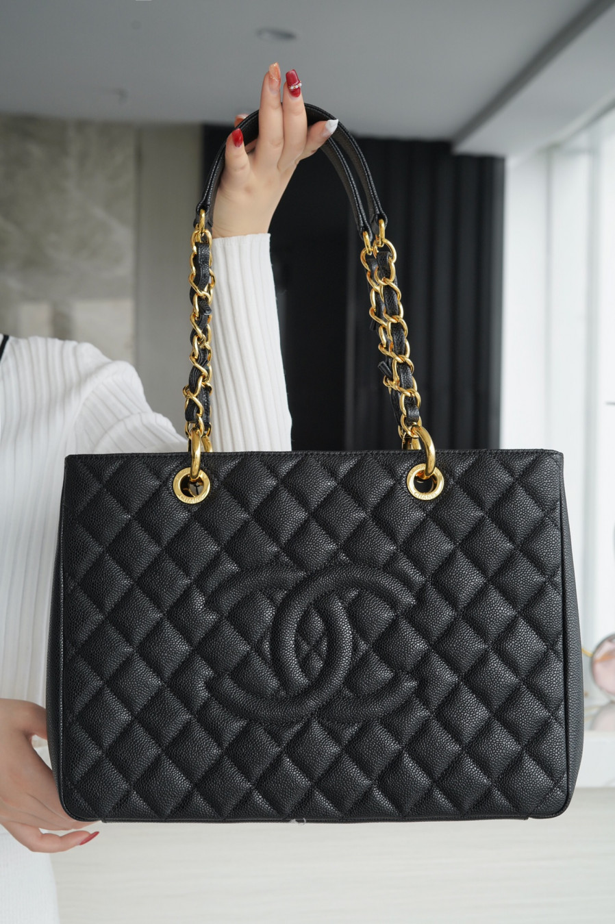 • 샤넬 GST 그랜드 샤핑 토트백 캐비어 금장