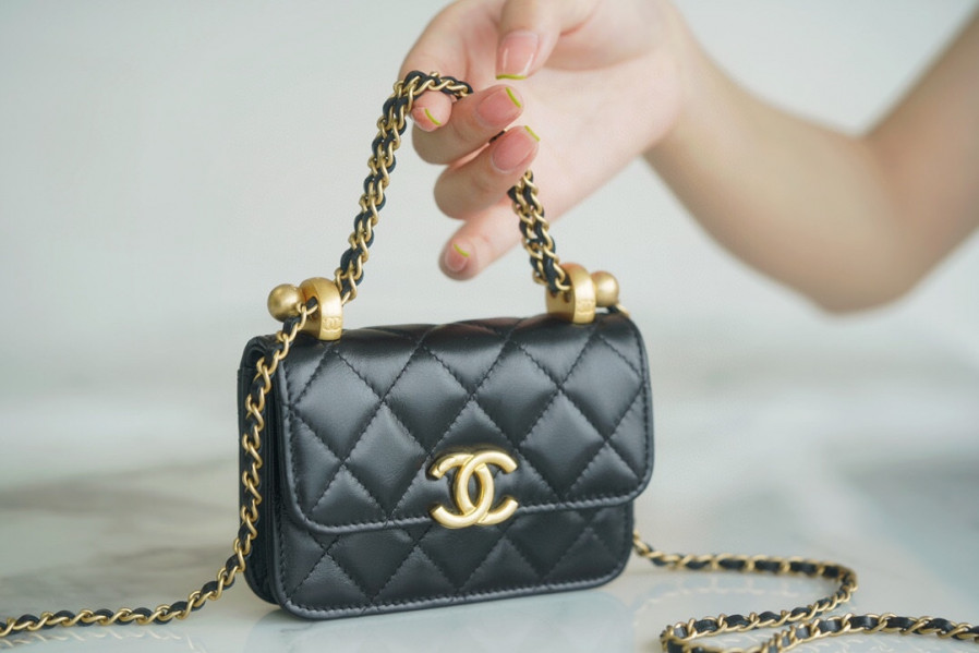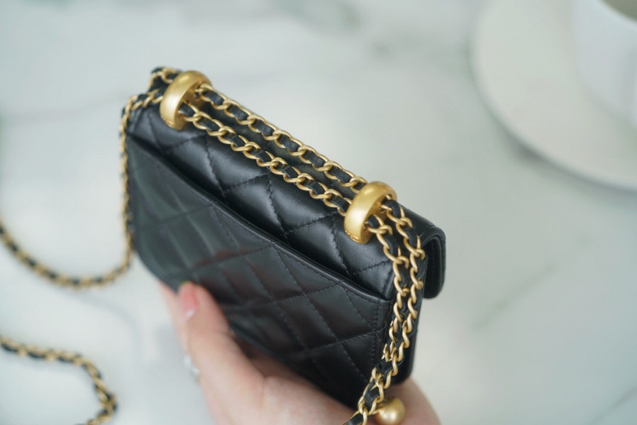 • 샤넬 더블 골드볼 미니 WOC 블랙