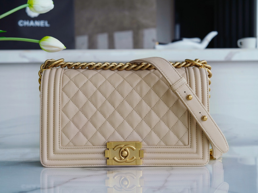 샤넬 보이백 미듐 라이트베이지 금장 캐비어 요약정보 및 구매