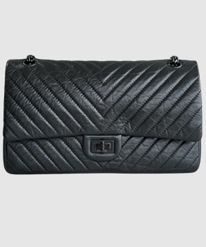 샤넬 2.55 빈티지 플랩백 올블랙 미듐 > WOMAN