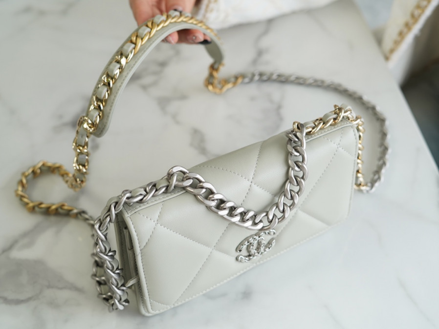 샤넬 19 WOC 턴락 램스킨 라이트그레이 은장 요약정보 및 구매