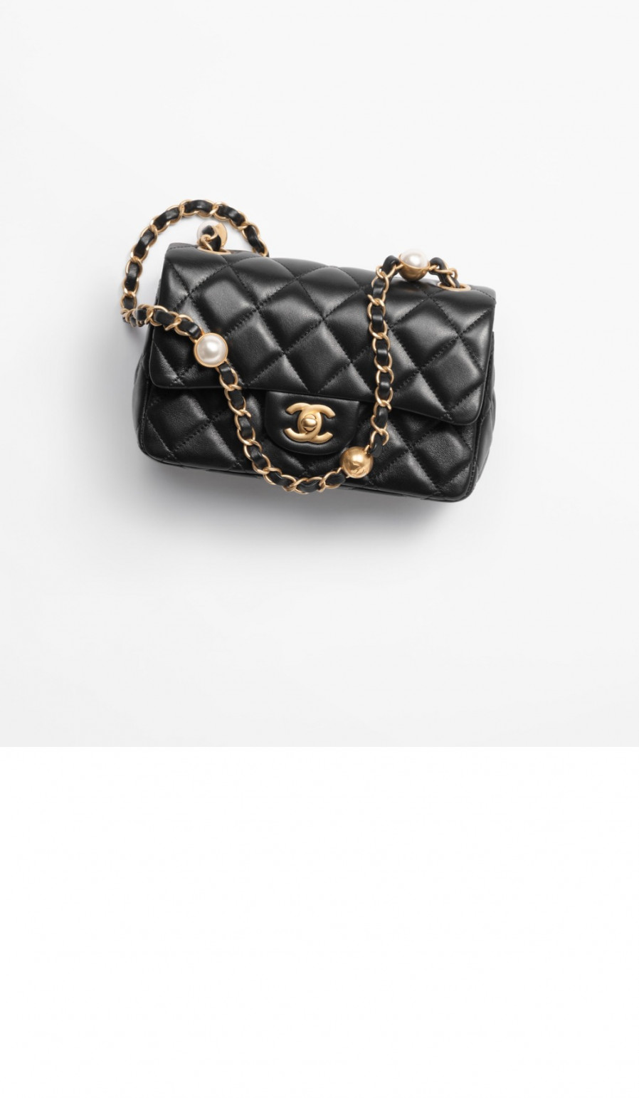 • 샤넬 스몰 플랩백 램스킨 플렉시 & 골드 메탈 화이트