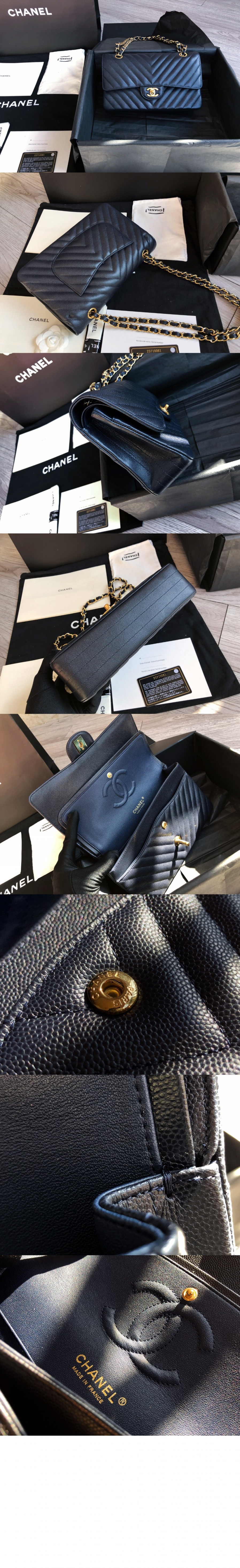 • 샤넬 쉐브론 클래식 캐비어 미듐 인기색상 A01112