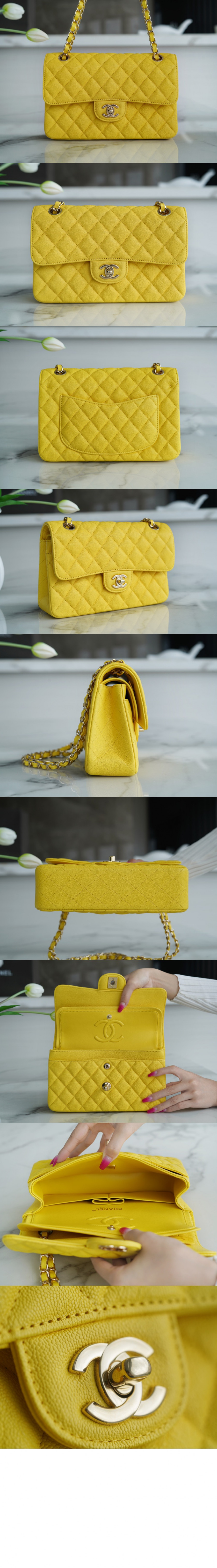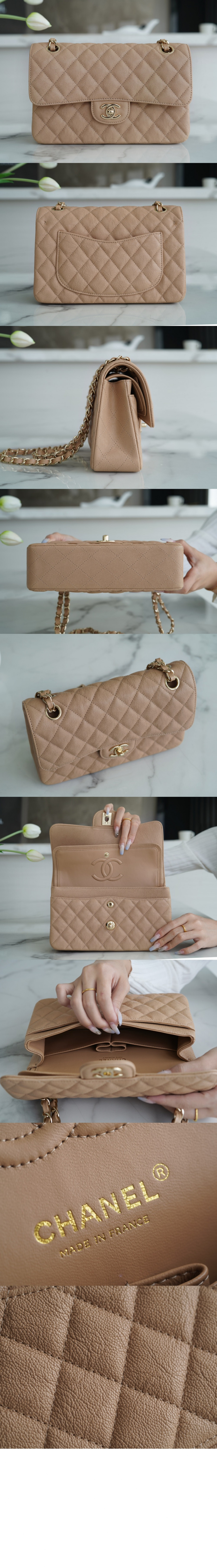 • 샤넬 클래식 캐비어 스몰 샴페인골드 A01113