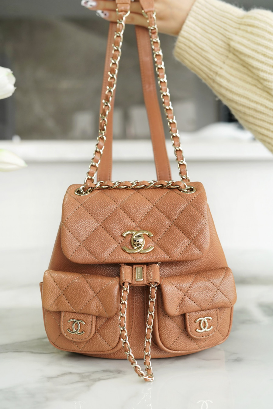 샤넬 23A 듀마 더블 포켓 백 스몰 카라멜 > WOMAN