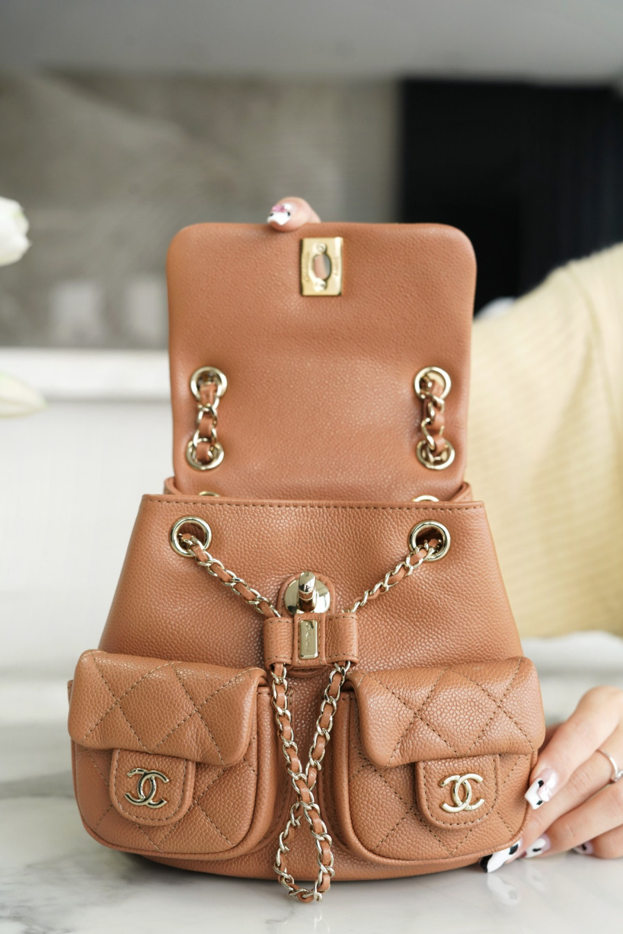 • 샤넬 23A 듀마 더블 포켓 백 스몰 카라멜