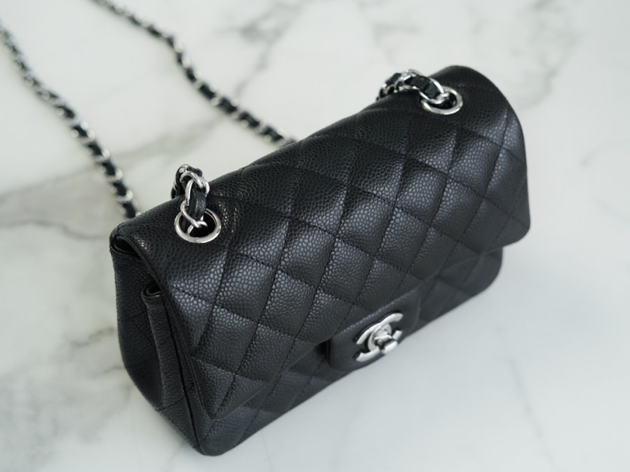 • 샤넬 클래식 미니 블랙 은장 캐비어