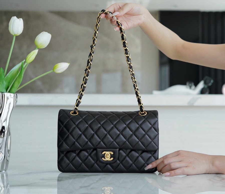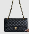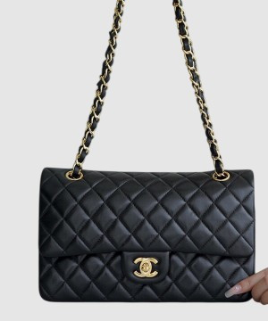• 샤넬 클래식 미듐 블랙 금장 램스킨