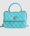 • 샤넬 클래식 탑핸들 미니 백 블루 램스킨 은장