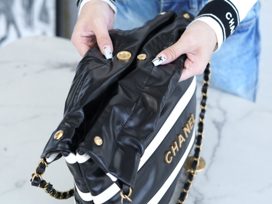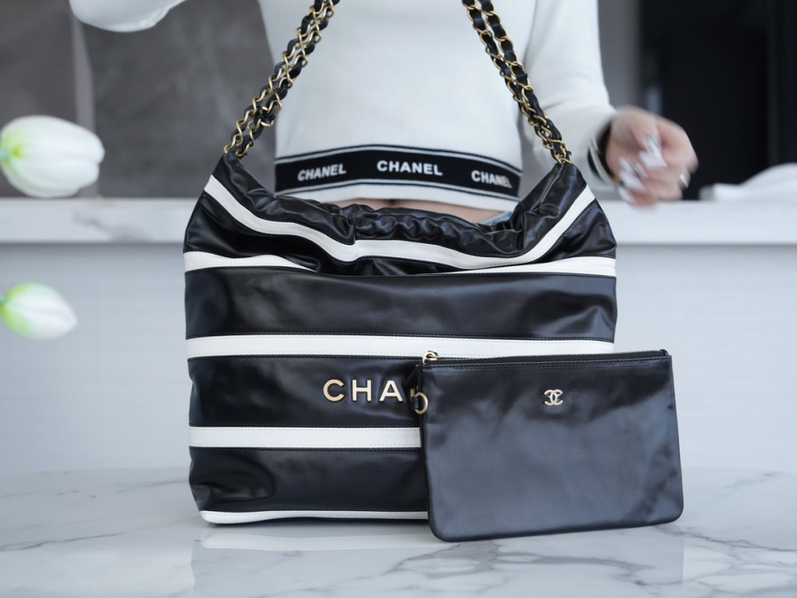 • 샤넬 24SS 스트라이프 22백 블랙 화이트