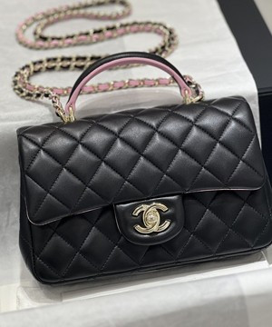 샤넬 핸들 미니 CF 플랩백 램스킨 블랙핑크 > WOMAN