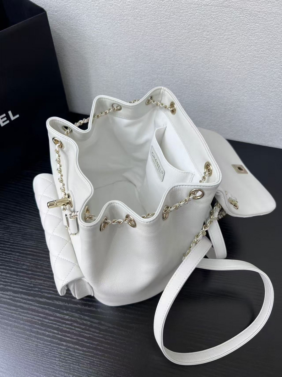 샤넬 듀마 백팩 원포켓 미듐 캐비어 금장 화이트 > WOMAN