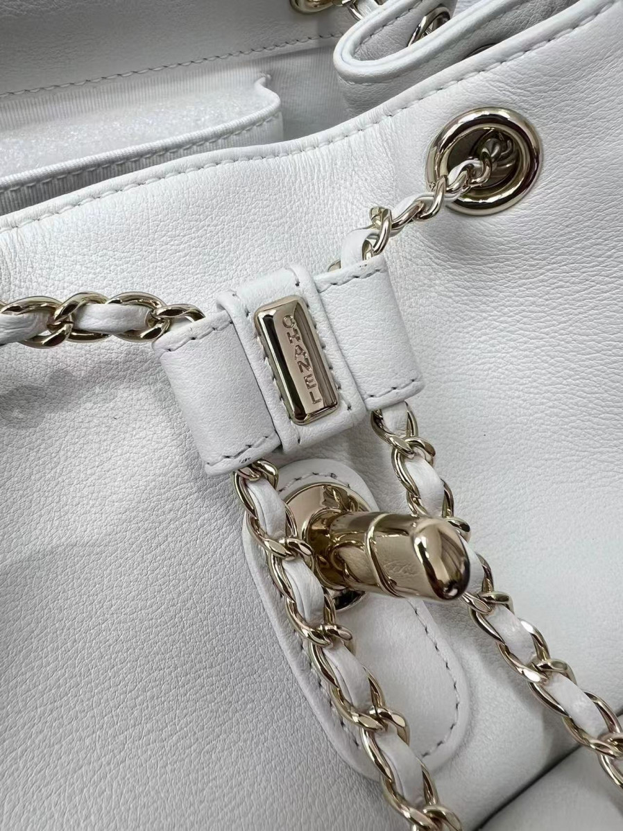 • 샤넬 듀마 백팩 원포켓 미듐 캐비어 금장 화이트