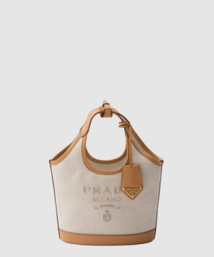 프라다 리넨 혼방 및 가죽 미니 버클백 1BE074 > WOMAN