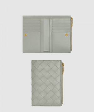 보테가베네타 인트레치아토 미디엄 지퍼 지퍼 바이폴드 지갑 749940 > WOMAN