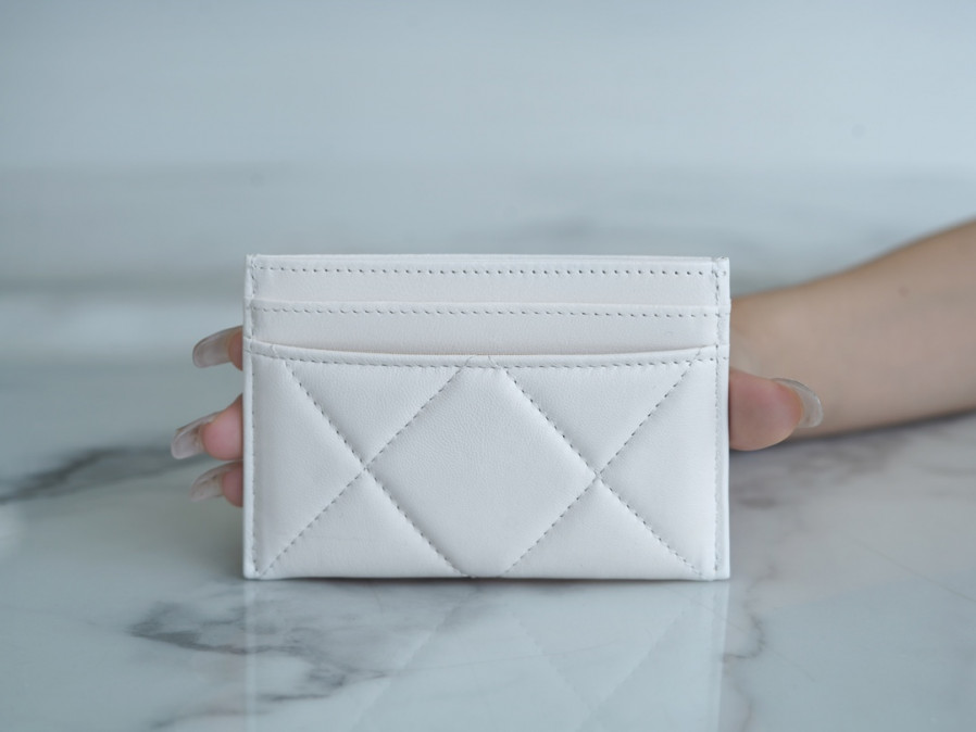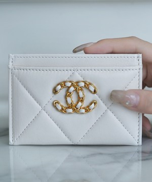 • 샤넬 카드 지갑 램스킨 금장 화이트 AP1167