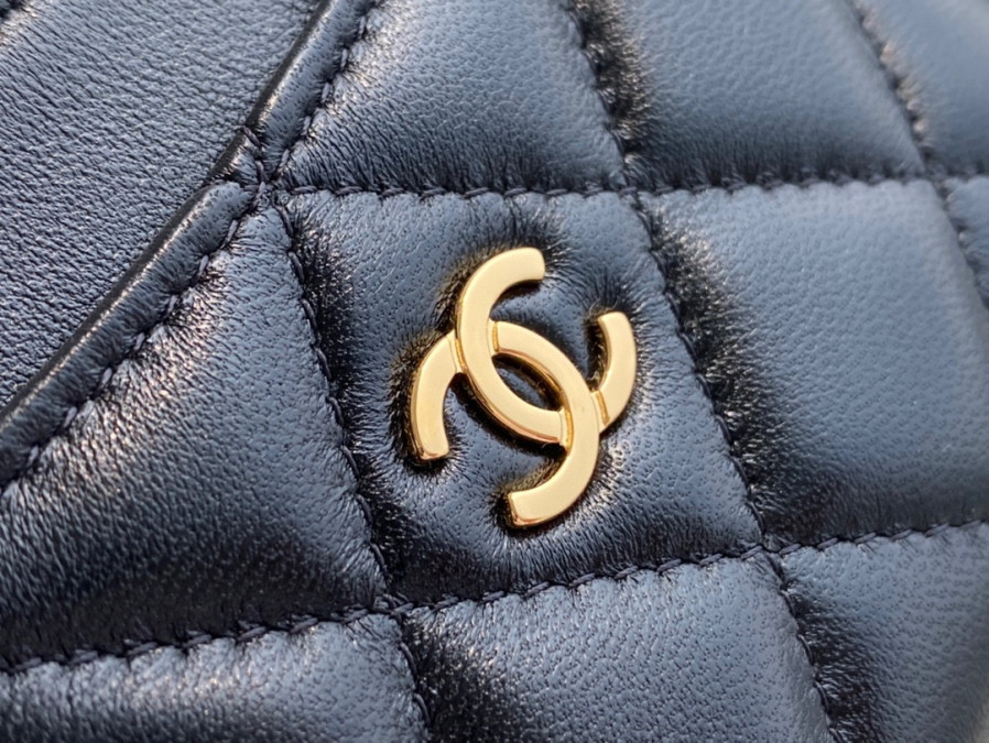 • 샤넬 클래식 미니 파우치 네이비 캐비어 금장 15 x 9.5CM