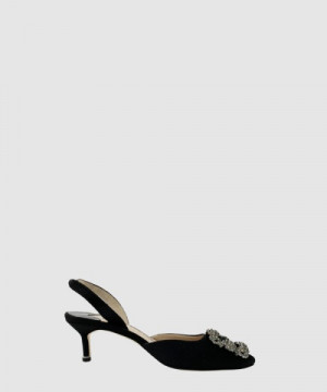 • 마놀로블라닉 새틴 주얼 버클 뮬