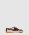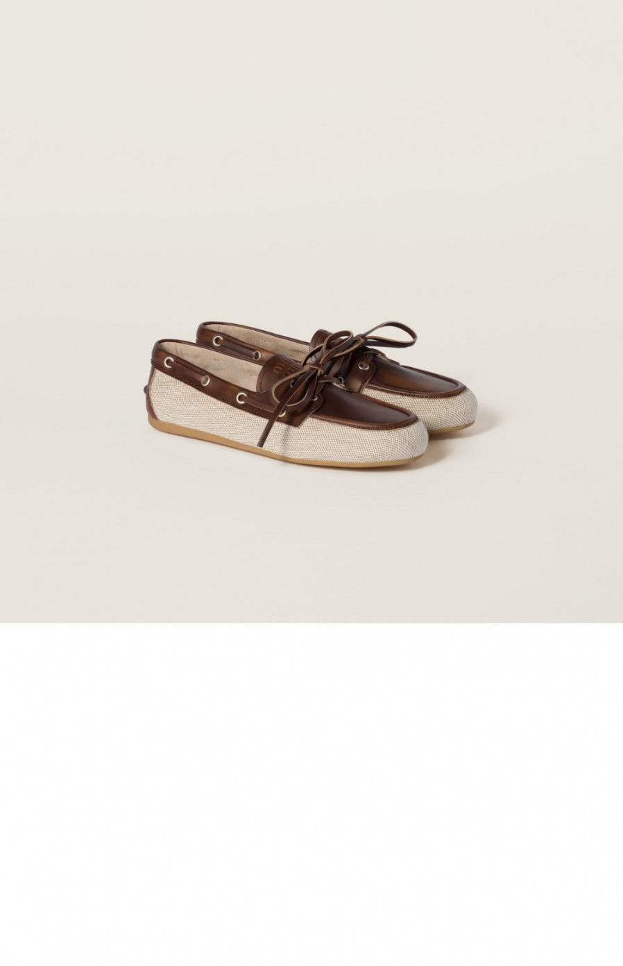 미우미우 캔버스와 표백된 가죽 보트 슈즈 5D376E > WOMAN