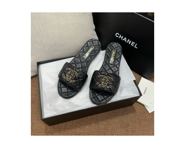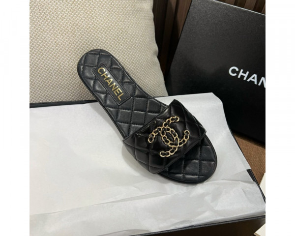 • 샤넬 CC로고 퀼팅 뮬 슬리퍼 슈즈