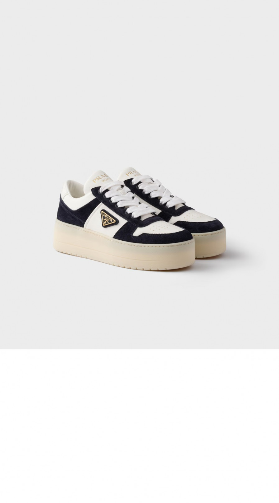 프라다 다운타운 볼드 나파 가죽 및 스웨이드 스니커즈 1E792M > WOMAN