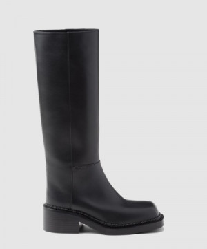 • 샤넬 가죽 빅 옆 CC로고 롱부츠 24SS 레더 부츠 블랙 G45433