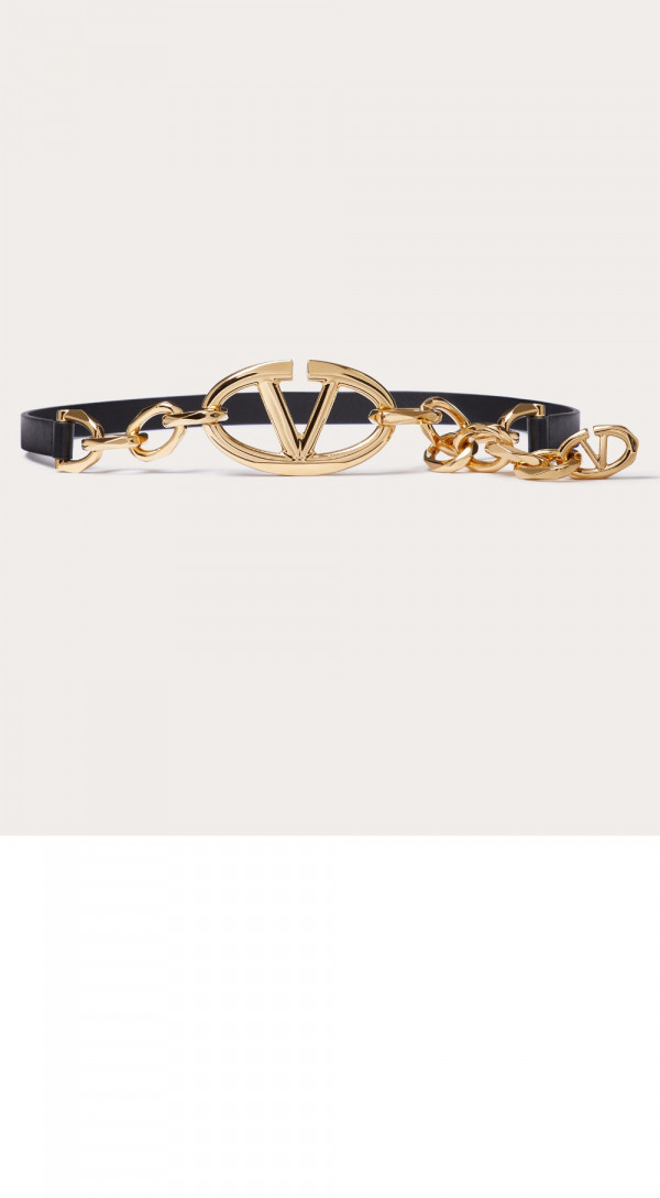발렌티노 브이로그문 광택 소가죽 체인벨트