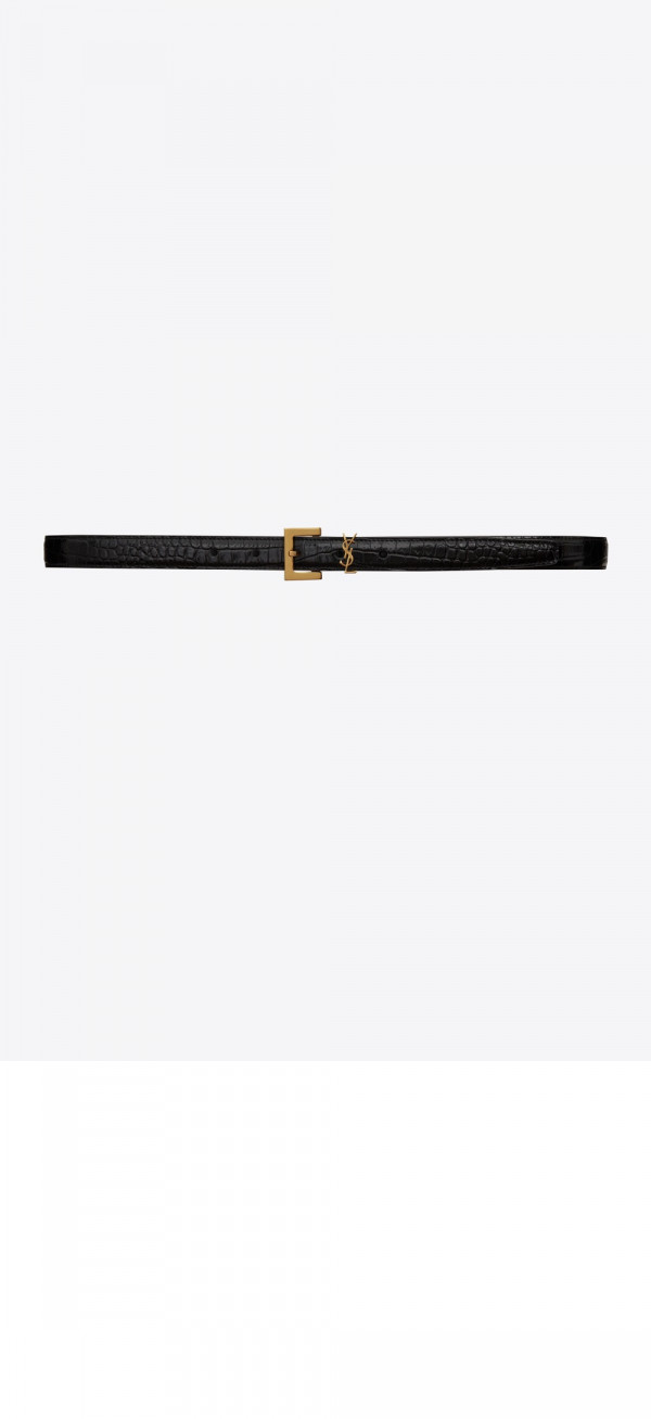 생로랑 스퀘어 버클을 장식한 크로커다일 엠보스드 가죽 소재의 얇은 모노그램 벨트 554465
