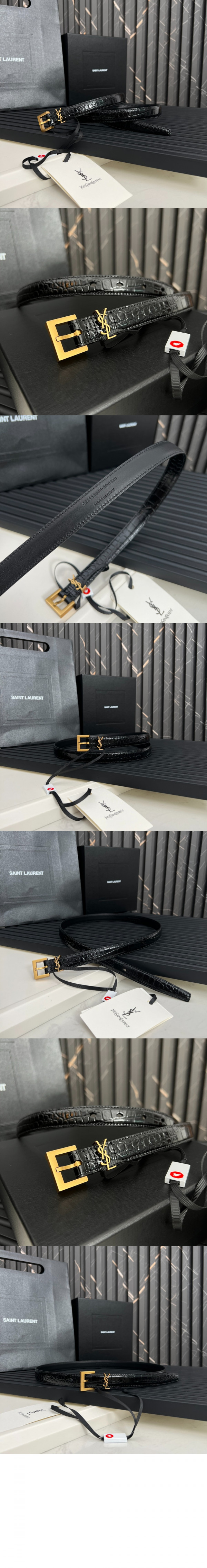 • 생로랑 스퀘어 버클을 장식한 크로커다일 엠보스드 가죽 소재의 얇은 모노그램 벨트 554465
