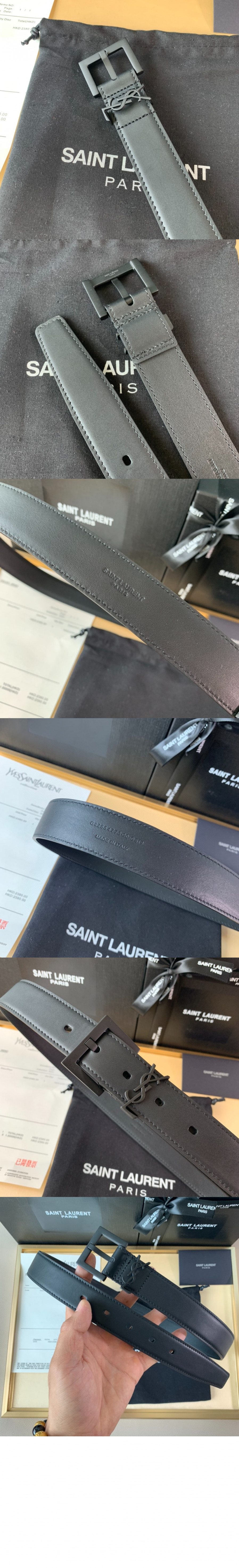 • 생로랑 스퀘어 버클을 장식한 유광 박스 생 로랑 가죽 소재의 벨트 634437