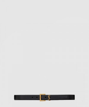 생로랑 부드러운 가죽 소재의 스퀘어 버클 모노그램 벨트 634437 > WOMAN