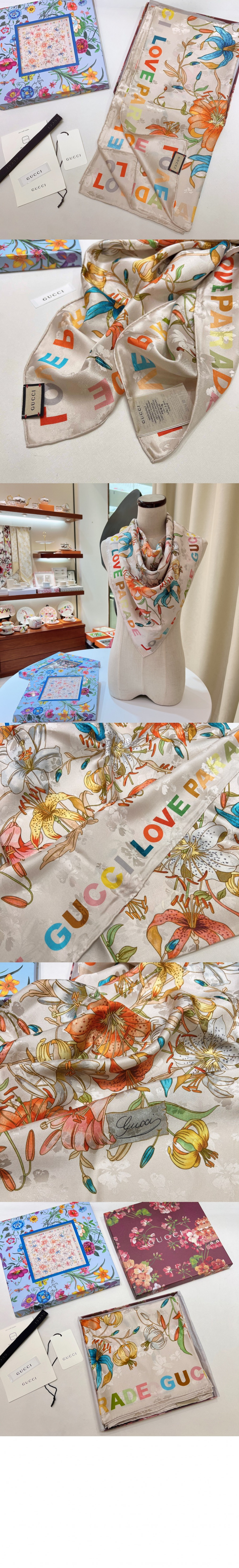 구찌 꽃 프린트 실크 스카프 704127 요약정보 및 구매