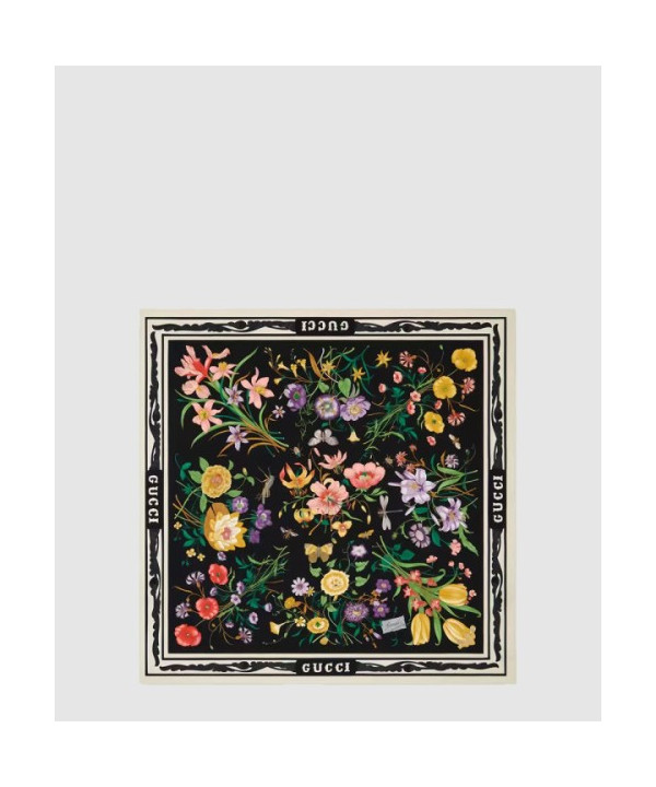 구찌 꽃 프린트 실크 스카프 699493