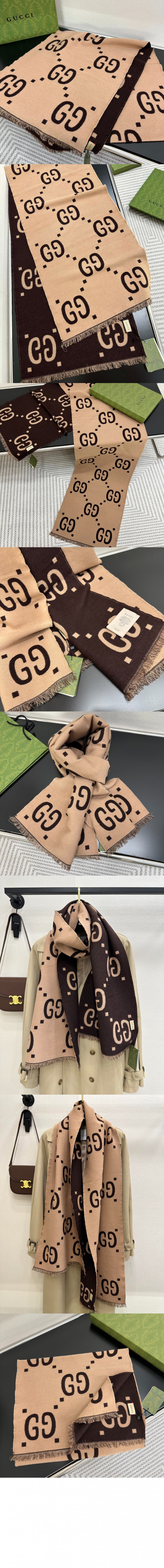 • 구찌 GG 자카드 울 실크 스카프 495592
