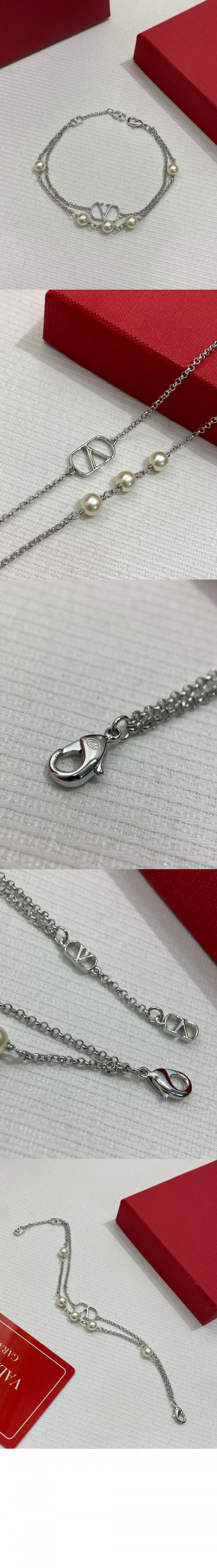 발렌티노 펄 장식 브이로고 시그니처 메탈 브레이슬릿