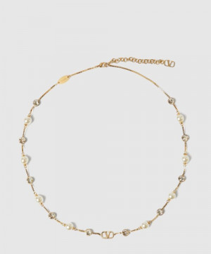 발렌티노 크리스털 장식 브이로고 시그니처 메탈 네크리스 > WOMAN