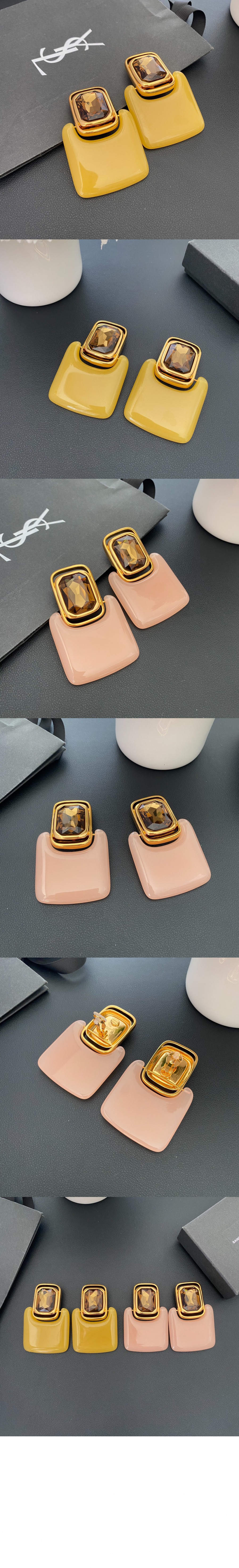 • 생로랑 레진과 메탈 소재의 카보숑 스퀘어 이어링 800770