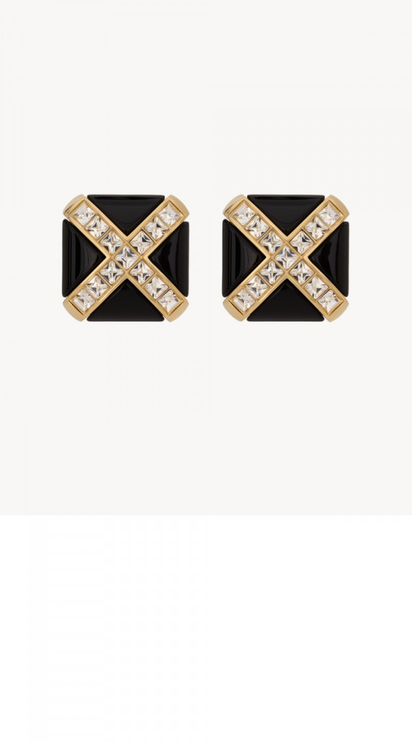 생로랑 레진과 메탈 소재의 크리스탈 크로스 이어링 805022