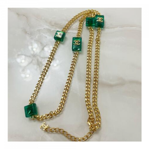 • 샤넬 CHANEL 앤티크 에메랄드 각설탕 이니셜 목걸이