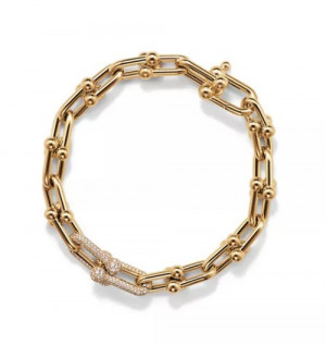 • 티파니앤코 미디엄 링크 브레이슬릿, 옐로우 골드, 다이아몬드 세팅