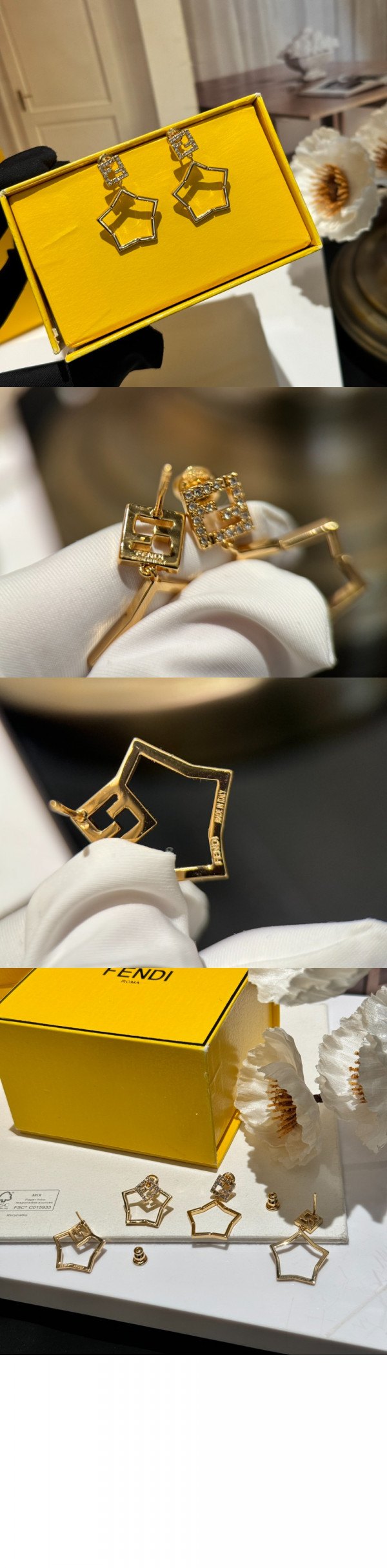 펜디 FF 별 모양 펜던트 이어링 8AK525